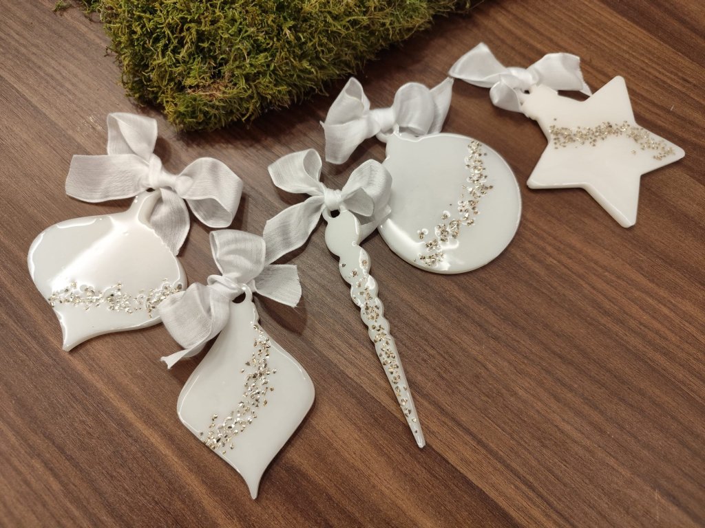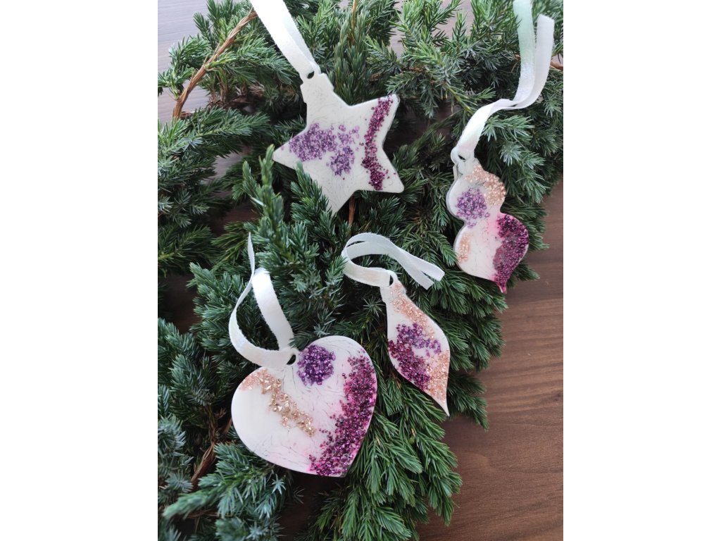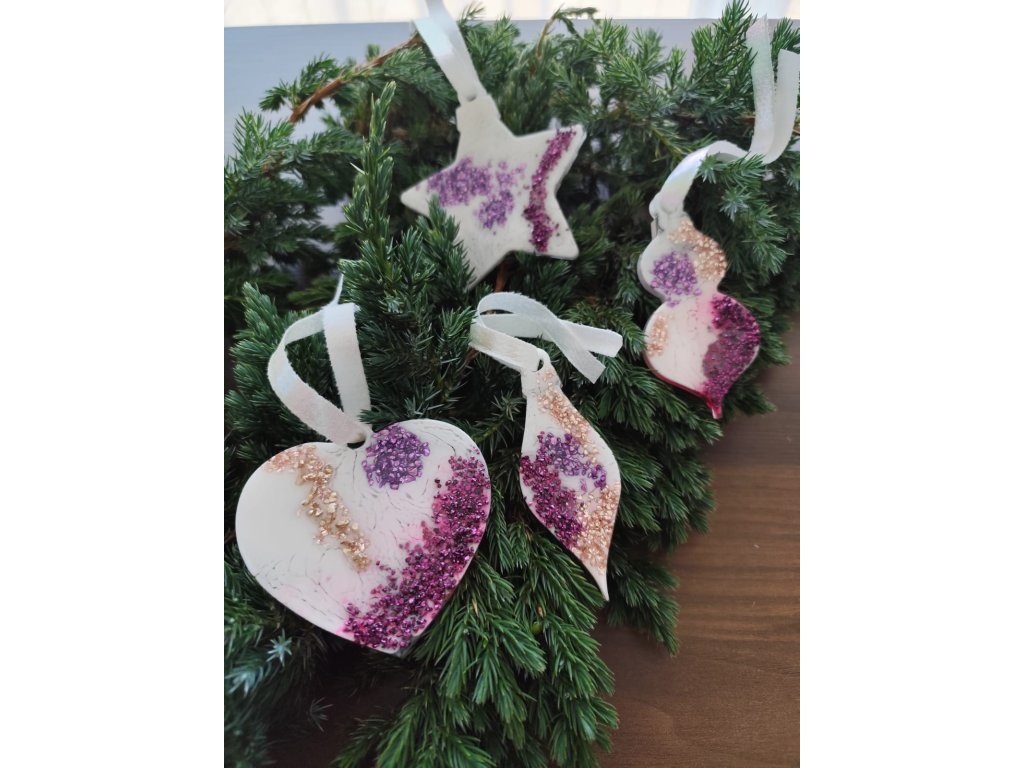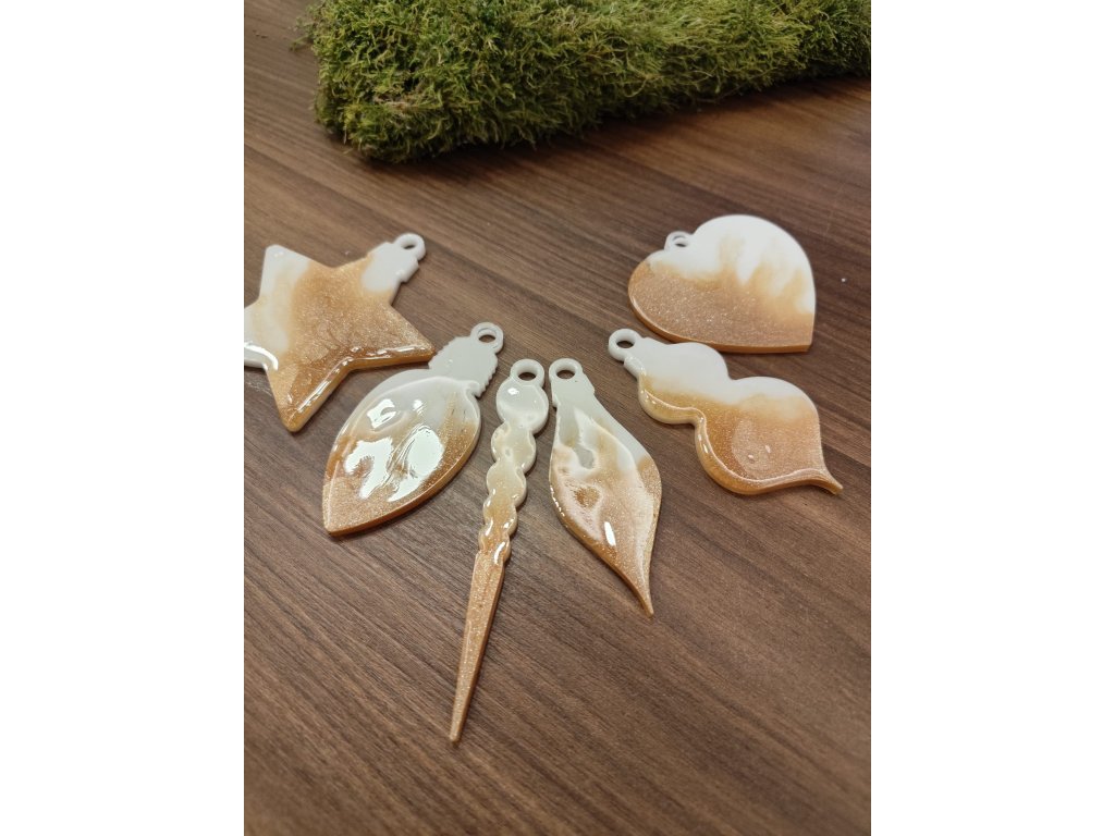 Ručně vyráběné vánoční ozdoby z epoxidové pryskyřice, ve kterých se snoubí kouzlo světla, barev, lesků, třpytu a jedinečných vzorů a efektů.